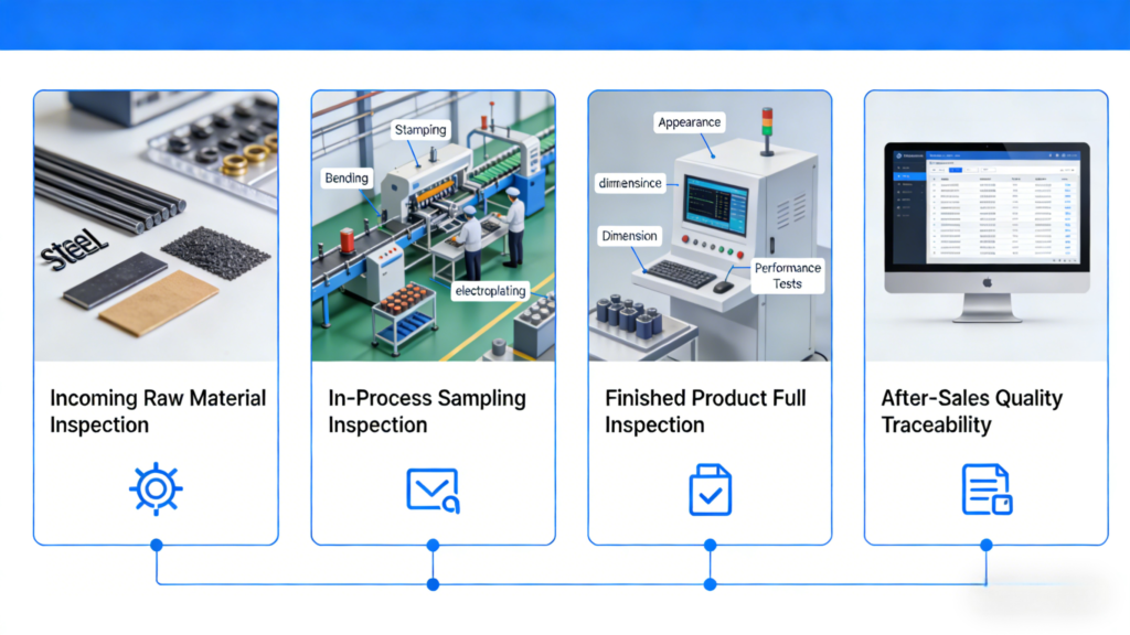 - Incoming Material Inspection: Each batch of steel, plating solution, and other raw materials undergoes strict testing before production begins, eliminating upstream variables.